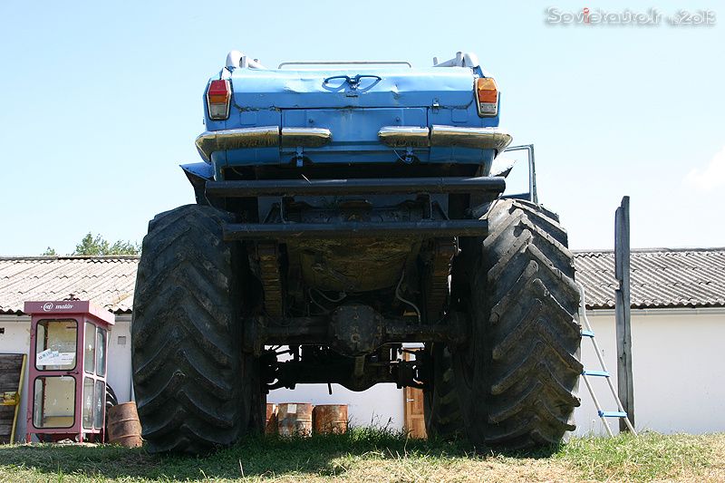 Qu’à ne cela tienne j’allais bien trouver quelque chose par moi-même. En visitant le hall de l’Hôtel Ezüstpart (curieux, non ? sauf si je vous disais que ce 3 étoiles avait le charme inimitable d’un vieil hôtel soviétique des années 70), je suis tombé sur flyer illustré par un Bigfoot Volga GAZ-24 et faisant la promotion d’un parc d’activité proposant des lasergames et du paintball !